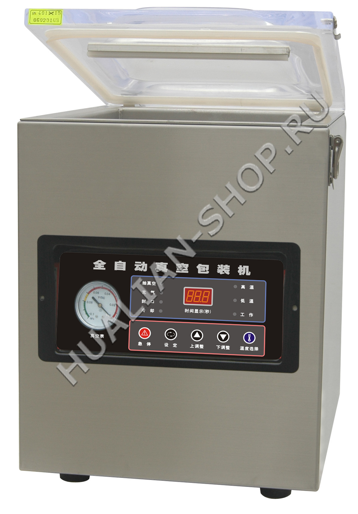 По умолчанию изготавливается полностью из нержавеющей стали. Вакуумники HVC-260T/1A (DZ-260/PD) также поставляются только в нержавейке, имеют одну запаечную планку и сенсорную панель управления. Данные машины помимо общего применения широко используются в банковской сфере для упаковки денег, финансовых документов и т.д. Вакуумная упаковочная машина HVC-410T/2A (DZ-400/2T) наиболее вместительная из представленных в данной линейке, две запаечные планки позволяют упаковать большее количество пакетов за единицу времени, в наличии на складе представлены все комплектации – крашеный металл, нержавеющая сталь и нержавейка + функция газации.