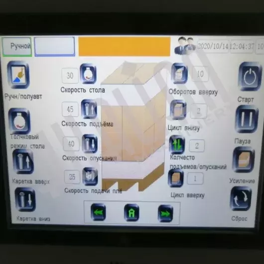 Паллетоупаковщик HL-1500Е оборудован современной системой управления с сенсорным экраном, отображающим все процессы на русском языке. Дополнительно, аппарат оснащен фотоэлектрическим выключателем для точного определения высоты поддона, датчиком приближения и регулятором скорости упаковки. Время упаковки можно легко настроить оператором, а также ввести специальный режим защиты определенных частей.