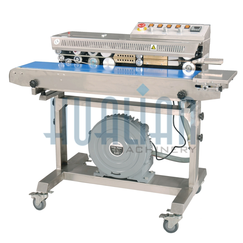 Конвейерные запайщики непрерывного типа серии FRM-1010 используются для запайки практически любых термосвариваемых материалов. Основное отличие от запайщиков предыдущих серий – расширенная и удлиненная база конвейера. Принцип проставления даты – при помощи красящего ролика, прокатыванием. Серия представлена четырьмя модификациями – горизонтальный запайщик FRM-1010I, вертикальный FRM-1010II, горизонтальный на подставке FRM-1010III, запайщик с функцией откачки воздуха FRMC-1010III. Подача пакетов справа налево.