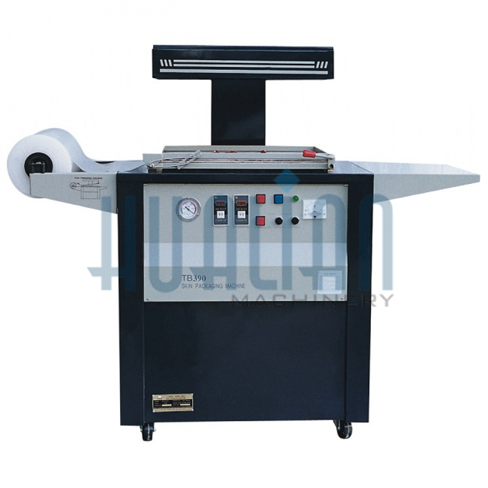 Машина предназначена для упаковки инструментов, фурнитуры, замков, крепежа, канцелярских принадлежностей, игрушек, медицинских приборов, аксессуаров для мобильных телефонов, запчастей, и т.д. в скин-упаковочную пленку. Товар размещается на подложке и помешается в машину, далее пленка разогревается, лампами и при помощи вакуумного насоса пленка обтягивает продукт. Время нагрева и глубину вакуума можно регулировать, что позволяет добиться хорошего качества упаковки на разных пленках. Максимальный размер рабочей зоны 390х540 мм, ширина скин-пленки 450 мм.